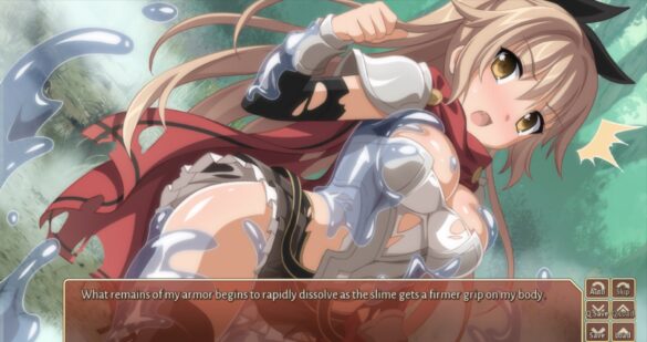 The empress Ardena orders the formulation of a searching party, whose quest is to investigate the whereabouts of the fallen star. It’s a dangerous mission, and the characters wrestle with their fear of death before engaging in spontaneous lesbian sex. They train their bodies and their genitals for a full month for the coming adventure. They go, and slime monsters eat their panties.