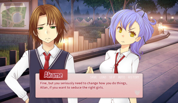 The male protagonist is mugged and killed. On death’s door, he makes a deal with a succubus to stay alive. Now he must do her bidding, finding and exorcising demons on the mortal realm in a multi-ending story where your choices affect the outcome.