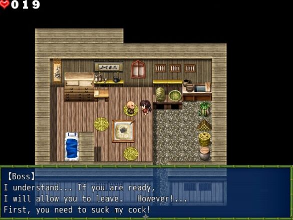 You play as Mizuna, a young female ninja. Her father died at the hands of the evil ninja, Darkness Fox. With evil magic, she also cursed Mizuna to have an unyielding sexual appetite. You must keep her lust at bay as you travel the surrounding villages, building up the skills to kill her, and the other ninjas. It’s a cliché revenge story, set in medieval Japan, and works as a fine excuse for murdering, and fucking your way to victory. You fight enemies, and get some allies to fight with, including animal companions. You also have a master that slowly helps you upgrade your equipment, in exchange for vegetables!