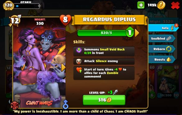 My current build in Cunt Wars hasn’t changed much. The only difference is that I’ve adjusted my strategy to be faster. The tanks in league 6 and 5 can have over 100 health points. It’s impossible for me to play long games against monsters who spend many times the money I do. My strategy is to play fast and dirty.