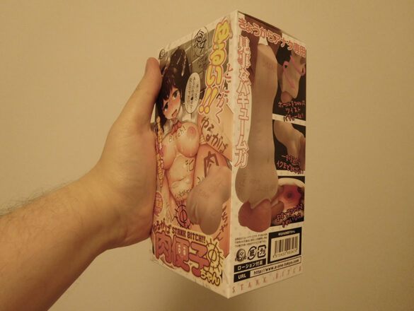 You can see all the goods from the side of the package. The internal structure of her pussy is grotesquely visible – just how she likes it. The toy is very soft and easy to squeeze, you can see some white-skinned pervert’s hands abusing her like that’s never going to damage her. The Japanese text is as incomprehensible to me as always.
