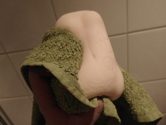 The cleaning process of Stank Bitch is easier compared to many similar sextoys. You don’t need any specialized equipment. Let a torrent of tap water wash out all the cum and lube. Keep the tap running for 20 seconds. Stick two fingers in to feel out any stickiness. Dry the outside with a normal household towel. Now it’s just the hole that still needs to be dried. When drying the water from the hole, you’re in for a ride. It’s damn easy to stuff in a normal bulky household towel, which is something you cannot do with most sextoys. Remember to stick in two fingers to test whether she’s still moist in the wrong places. Sextoys get mold and bacteria quickly if you’re sloppy. Let her air dry in a dry open place. I’m giving a high rating for the cleaning process of Stank Bitch, because you don’t need specialized equipment to dry her.