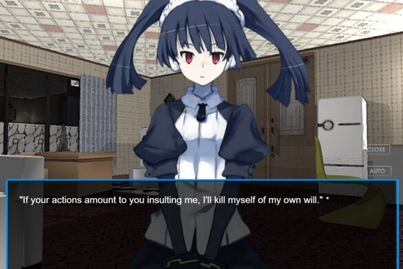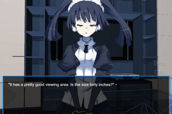 The game has a Japanese anime art style. The developers also make use of Live2D for Glare’s character sprite. She does subtle movements and fidgets cutely, making her more lifelike. Glare is dressed in a typical maid outfit, her hair put up in twin tails with a frilled hairband on her head. Her outfit is nicely detailed, from her puffed sleeves to the tiny black tie that rests on top of her chest. She only wears one outfit throughout the game.